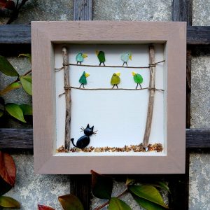Le bois flotté, les trésors des plages que je ramasse et la toile de coton. Je peins à l’acrylique, je colle, j’enfile au gré de mon inspiration créant des pièces uniques au doux parfum d’air marin et de nature.