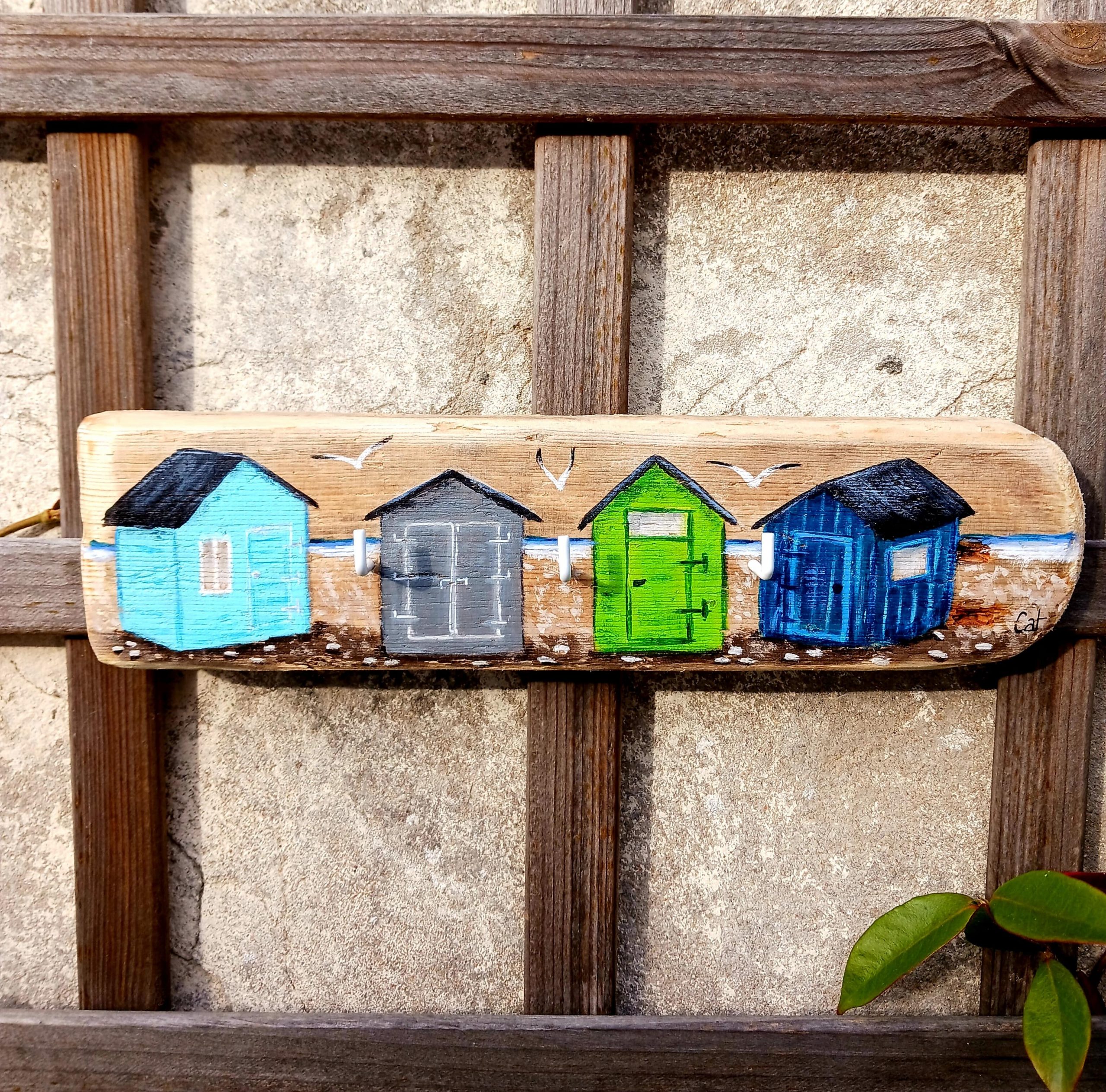 Esprit océan avec ces cabines de plage pour ce porte clés 3 crochets