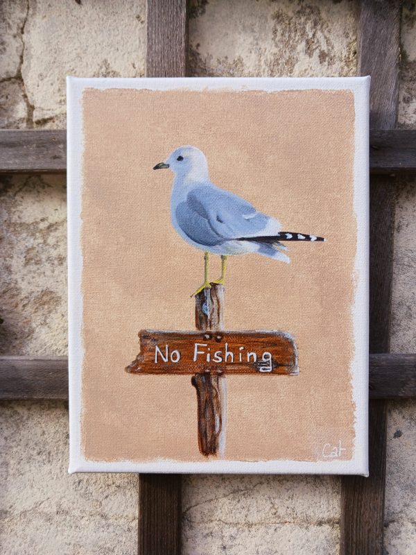 Jolie mouette perchée sur son poteau mais ne comprenant pas le No Fishing !