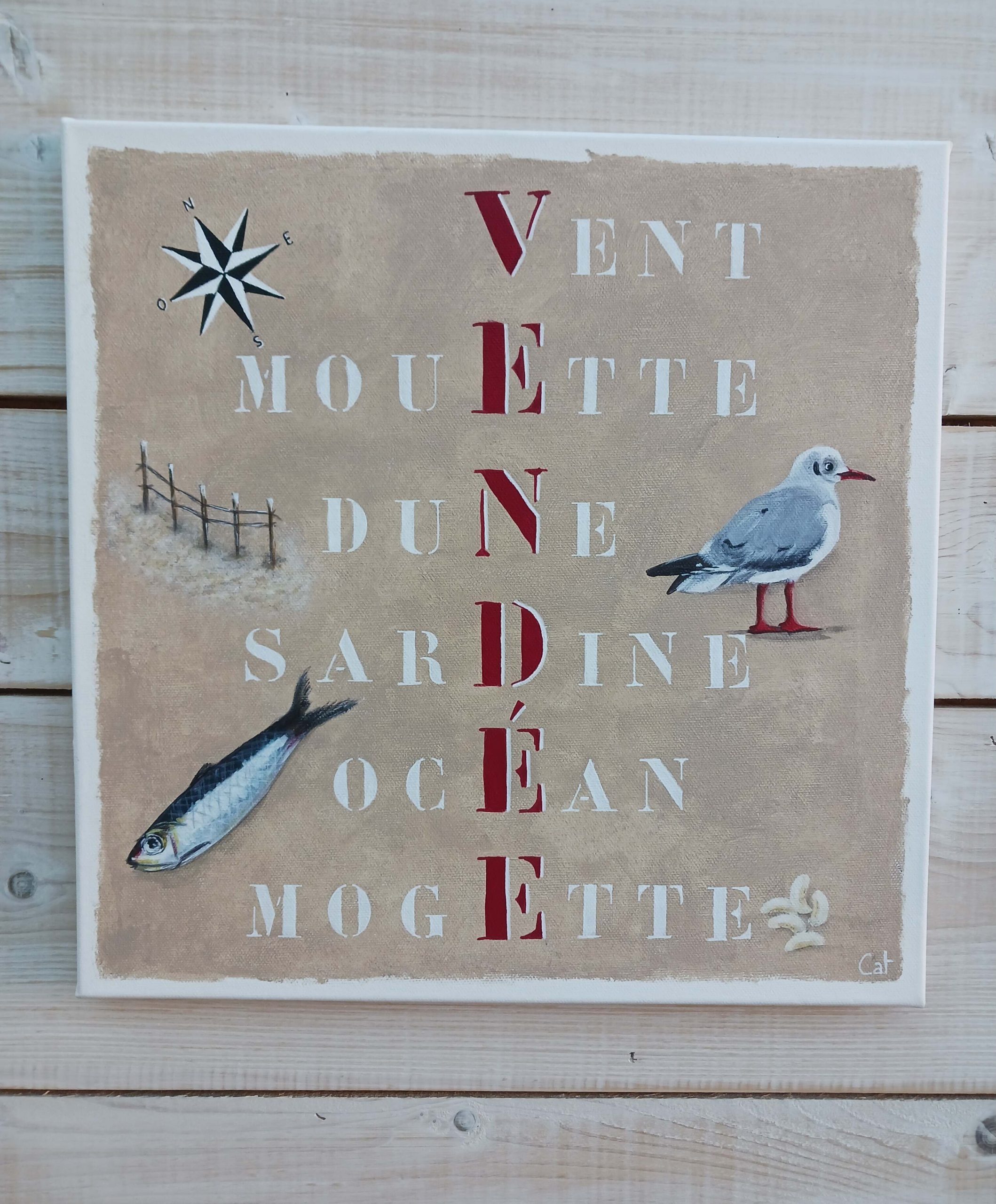 Une partie de ce qui définit la Vendée est représenté ici : la voile, la mouette, la sardine et le coeur son emblème