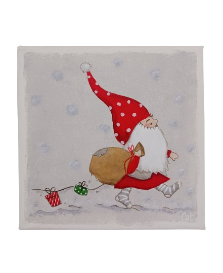Petit lutin du Père Noël qui perd des cadeaux car son sac est percé !