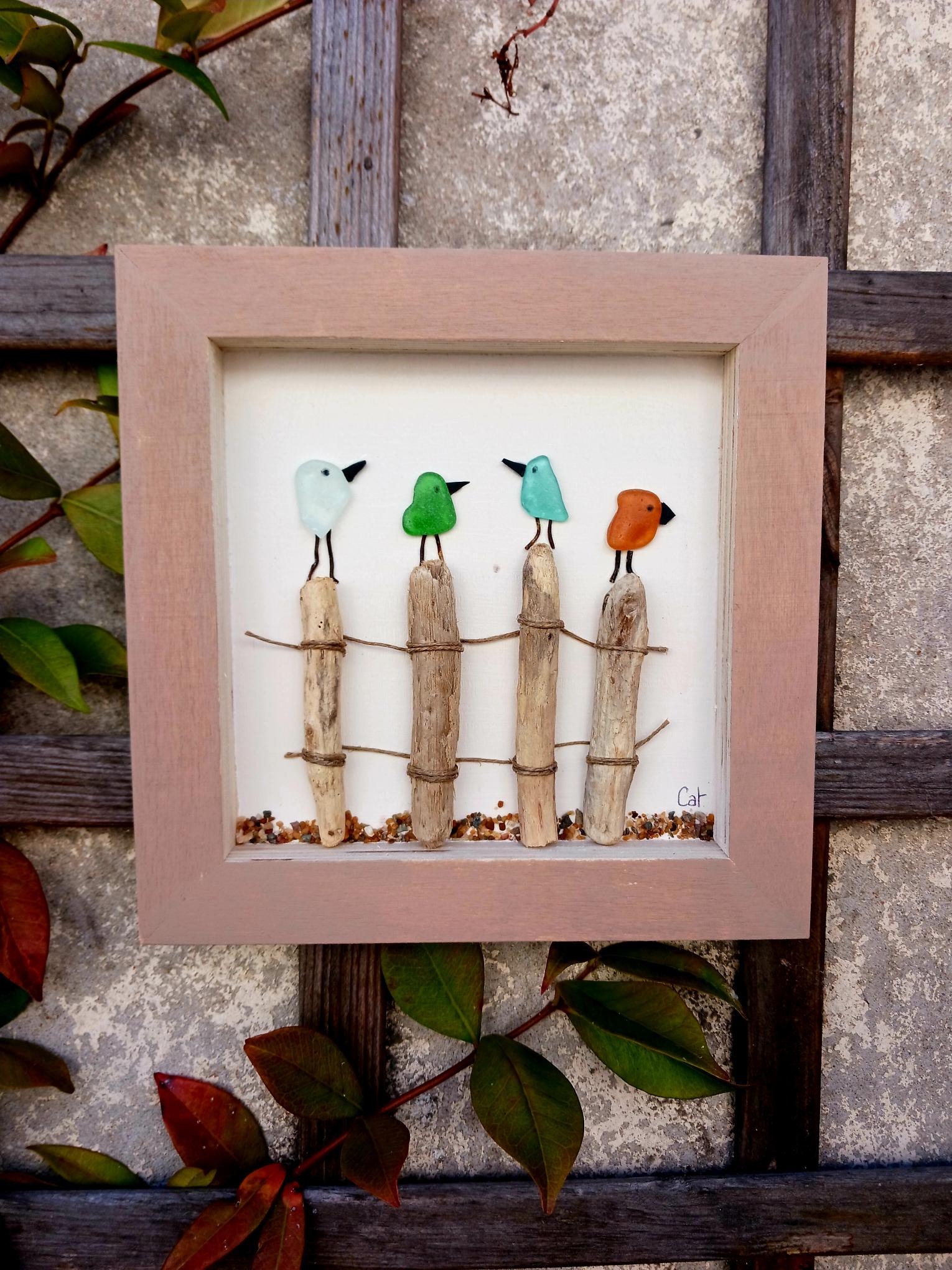 Recyclage de plage pour ces 4 petits zozios perchés sur leur ganivelle.