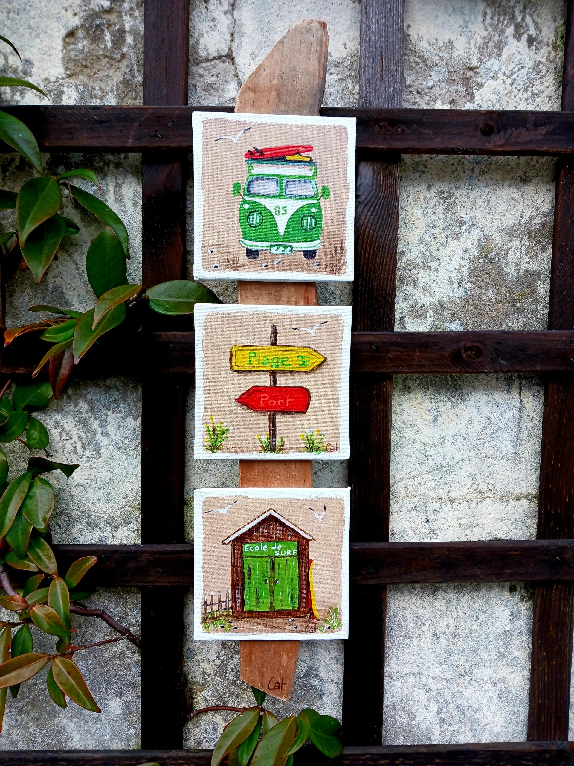 Acrylique sur toile de 10x10cm et collé sur un bois flotté – Dim : 45 x 10 cm